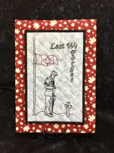 Try another rendition of the Lest We Forget pattern designed by H. Corinne Hewitt. This done in hand embroidery, quilted and bound.